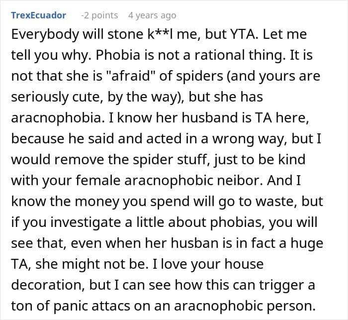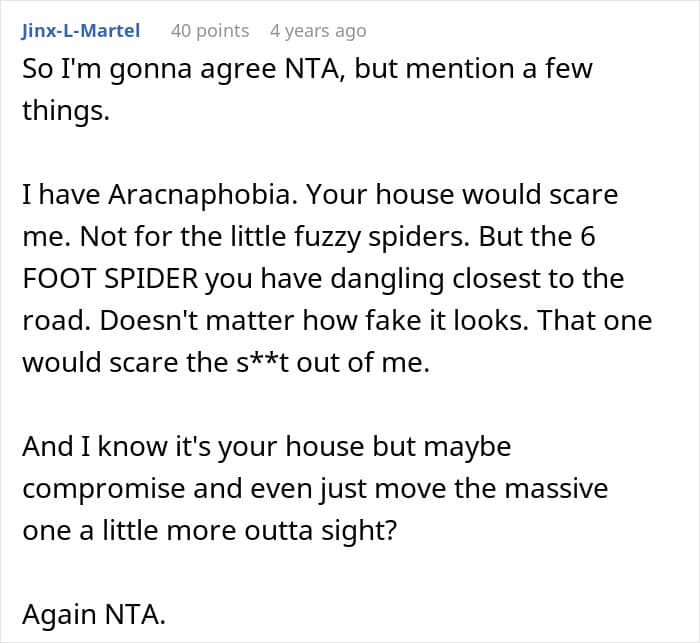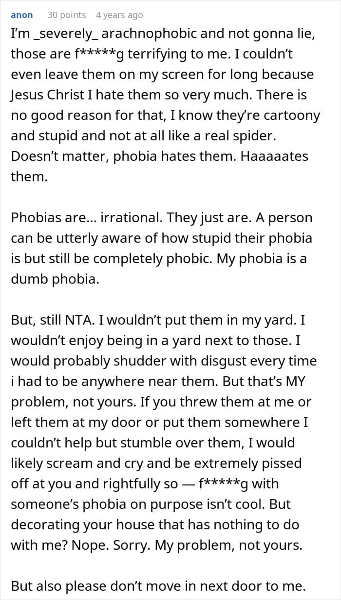 We would love to hear your thoughts on this story in the comments below, pandas. Would you be bothered if your neighbors put up fuzzy spiders and spooky decorations in their front yard? Feel free to weigh in. And then, you can find another We article discussing Halloween decor right here!