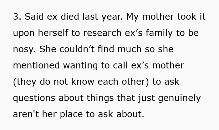 “My mother just wants to gossip about tragic [passings] and kissing cousins,” the mom added in an update