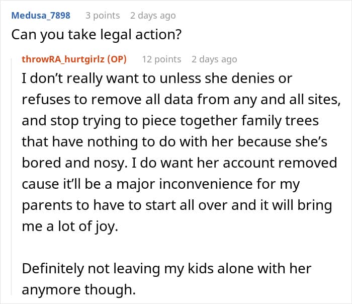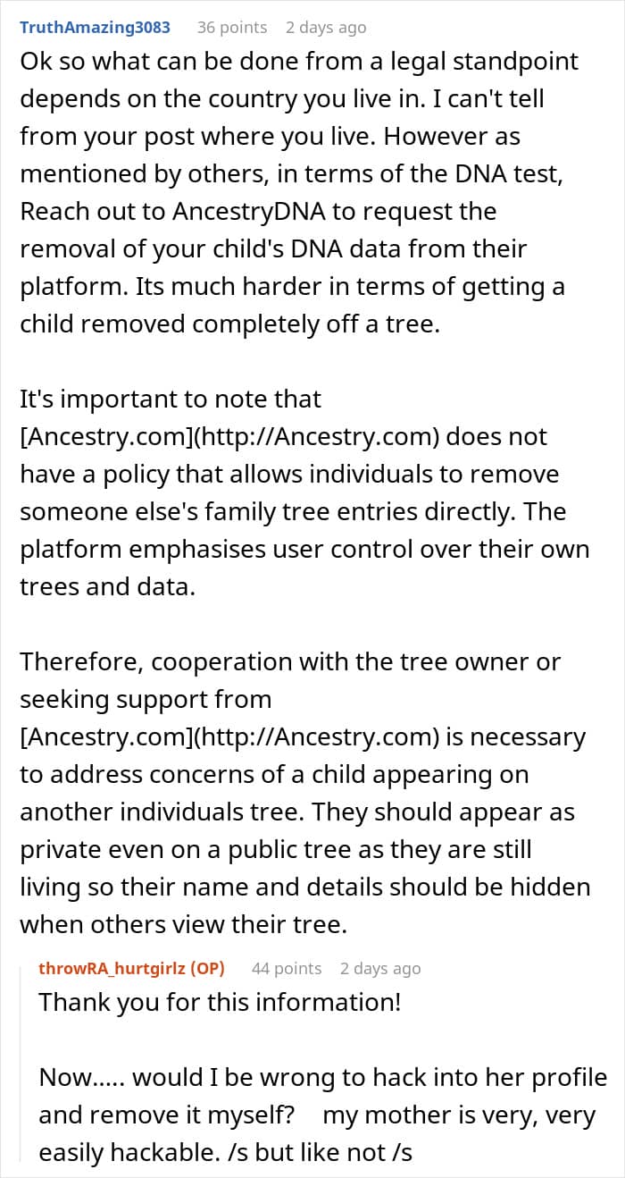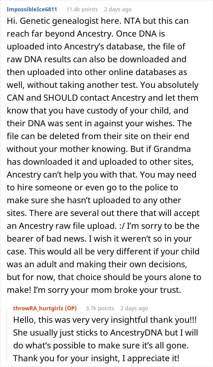 That’s exactly what happened to this mom whose mother took her grandchild to take an ancestry test but wanted it to be a secret. The mom, of course, found out and was so livid that she started considering reporting her own mother. But first, she asked the Internet to weigh in: should she go scorched earth on her mother or just let it go?