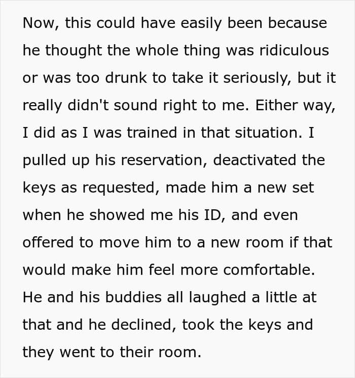 The luxury hotel agent says they did as asked when a drunk guest asked to have his room key deactivated. The man claimed it was a safety precaution. The hotel worker felt something was off. And they were right. It turns out the man was spitefully trying to leave his girlfriend stranded and publicly humiliated. At her expense. The worker stepped in to teach him an embarrassing lesson that he’s unlikely to forget for a while.