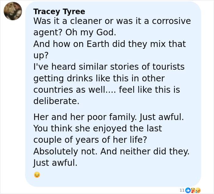 “Not passing judgment, but for those still here, it’s a reminder to sip your drink and wait rather than gulping,” one suggested. “I have a problem with taking very big gulps myself. It’s best to verify what is with a small sip.