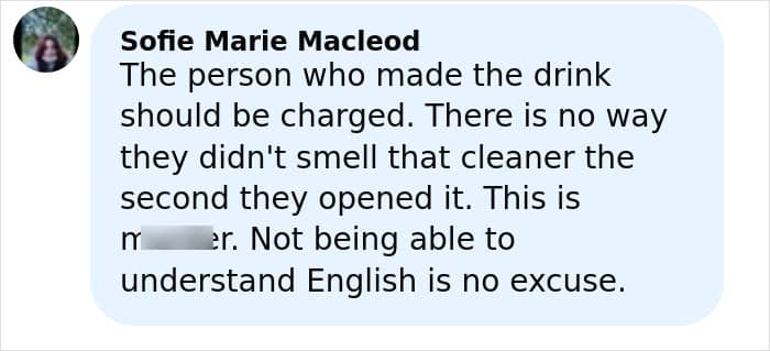 “Who would sit cleaning supplies next to the drink mix? I hope the family got a good settlement from the restaurant owners,” said one.