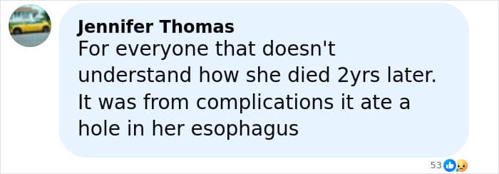After being rushed to the hospital, doctors found that her esophagus was severely damaged due to chemical burns.