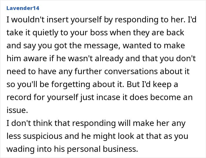 After getting a lot of advice from people online, the woman decided to inform her boss about the messages so that he could de-escalate the situation