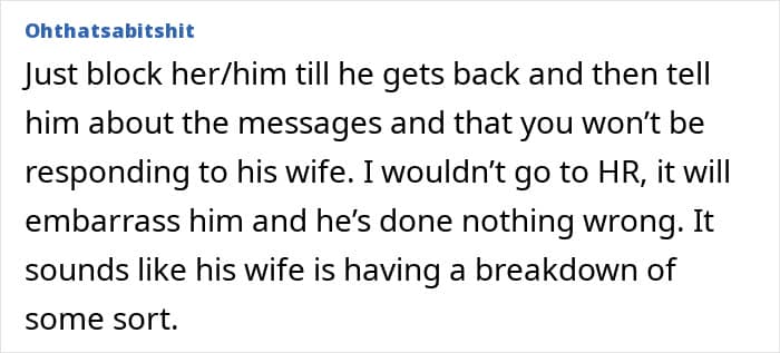 It’s important for organizations to protect the interests of their employees and create a safe space where they are able to speak up about such issues. They can even investigate the claims, documentation, and proof given in order to take the next steps forward, which is why it’s good that the OP was keeping screenshots of the wife’s messages.