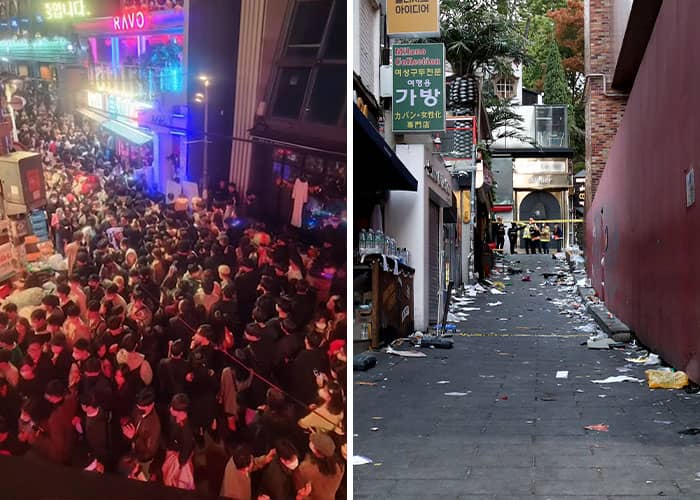 On Halloween weekend 2022, more than 100,000 people crowded into Seoul’s narrow Itaewon neighborhood for festivities, making the passageways dangerously congested.