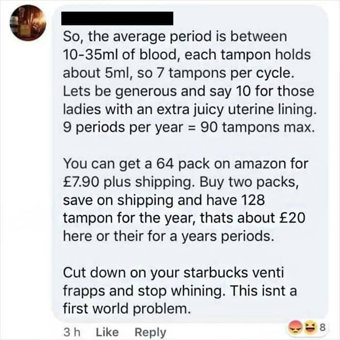 #12 Comment From Someone Regarding A Suggestion That Period Products Should Be Free
