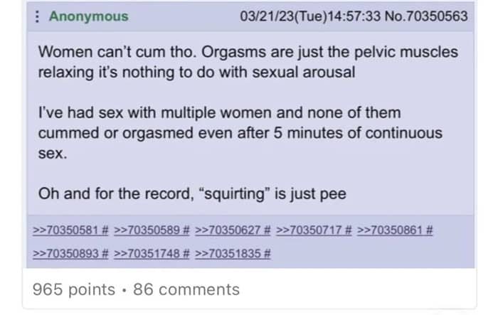 #31 “Females Need To Reach Orgasm By Penetration. It’s Biology.” -Someone Who Most Definitely Failed Biology