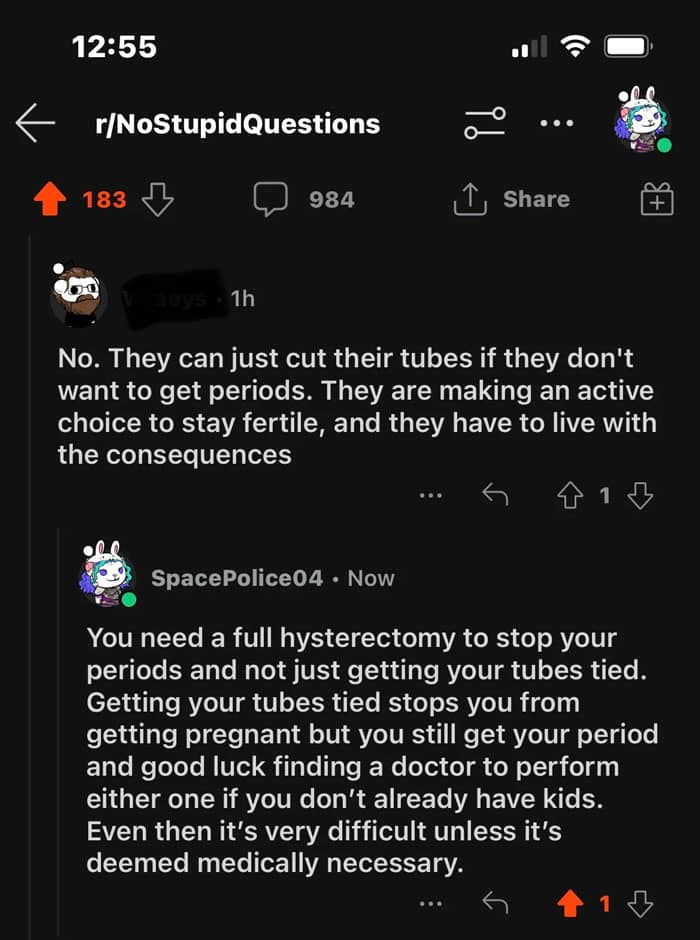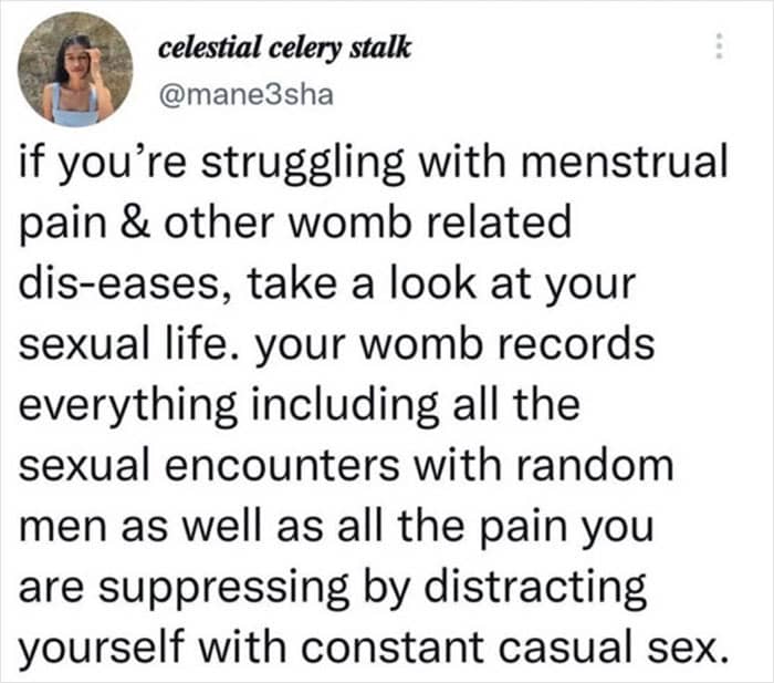 Clearly, as the photos on this list show, having a lack of understanding doesn’t stop many men from mansplaining away online about women’s bodies and health. But if you’re a man or a woman who’s actually interested in learning something about the female reproductive system you might not have known already, let’s start with discussing the menstrual cycle. According to the Cleveland Clinic, “Menstruation refers to the periodic shedding of your uterine lining when pregnancy doesn’t occur that cycle.” Most menstrual cycles take about 28 days and include three phases: follicular (when the egg develops), ovulatory (the releasing of the egg), and luteal (when hormone levels decrease if the egg doesn’t implant).