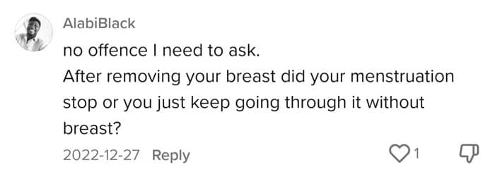 #97 Under A Tiktok Of A Woman Who Had A Mastectomy To Lower Risk Of Breast Cancer Lmao