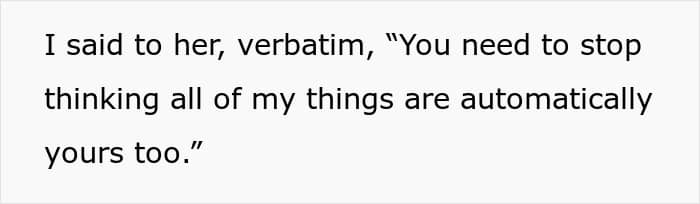 In that moment, the OP told the sister that she had to stop thinking all of her things were automatically hers too, and the reaction wasn’t exactly applause-worthy. Her little sister pouted, accusing the OP of never sharing her things and purposely leaving things behind at her mother’s house. Her sister’s mother also chimed in, saying she was “selfish” for belittling a sister who only wanted to be closer to her.