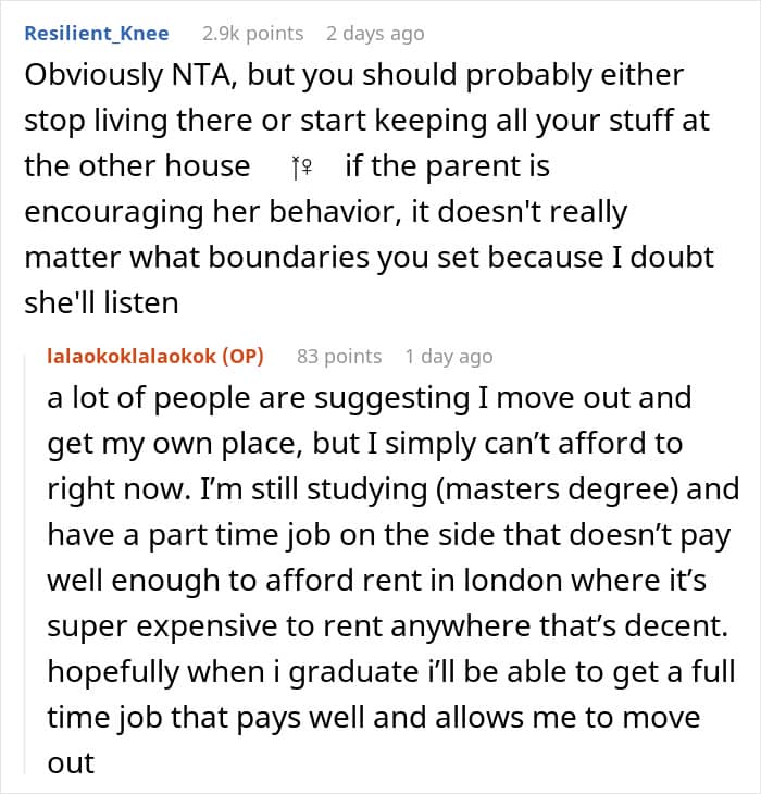 Netizens firmly sided with the OP, stressing that her sister is more than old enough to understand boundaries. They argued that the younger sister’s behavior wasn’t innocent sharing but stealing and using without permission. They also encouraged the OP to stand her ground and stop tiptoeing around her sister.
