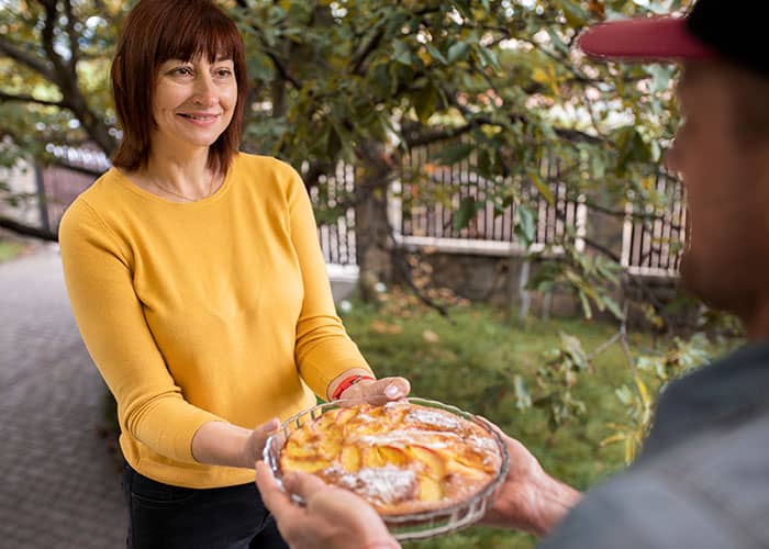 My neighbor is unable to come to dinner with us because he’s recovering from covid. I hate he’s spending it alone; he’s been spending holidays with us for years. We packed up a few plates for him and brought them over, so we got to visit on the porch for a minute but it’s not the same.