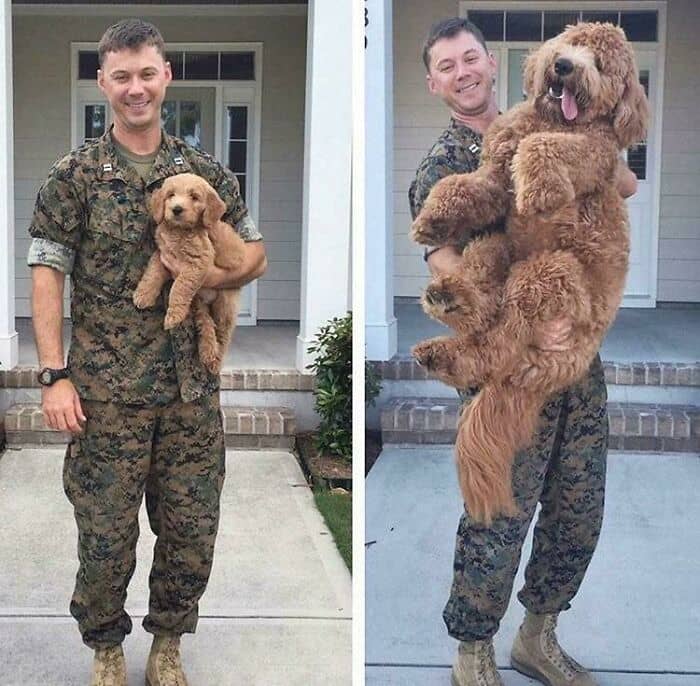 #16 Pictures Of A Dogs Growth Before And After His Owner Returns From Deployment