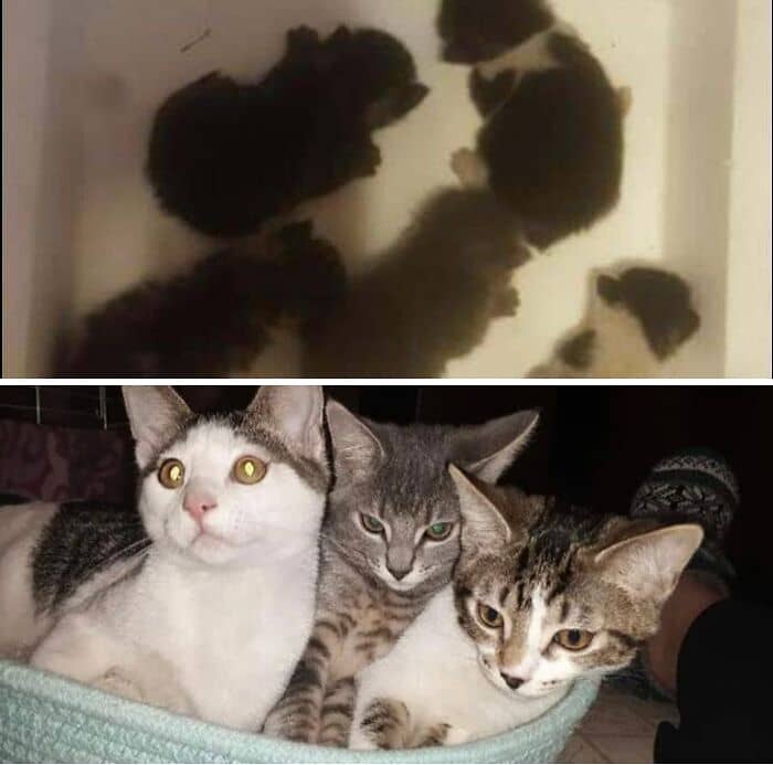 #50 Thought You Guys Might Like The Glow Up. 1 Week To 1 Year Old. These Three Are The Best Cats Ever. Zero (Black And White Tabby), Tabitha (Brown And White Tabby), And Smokey (Grey Tabby)