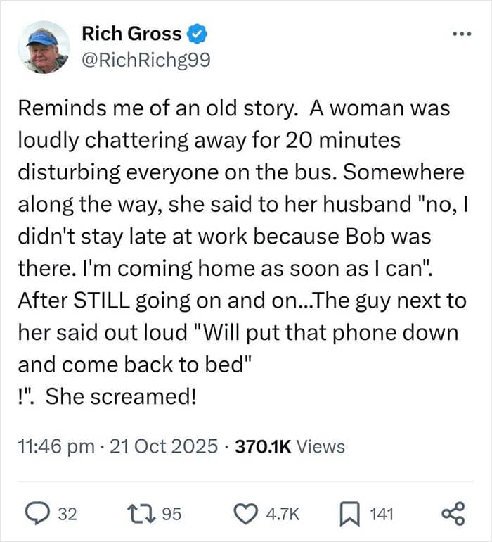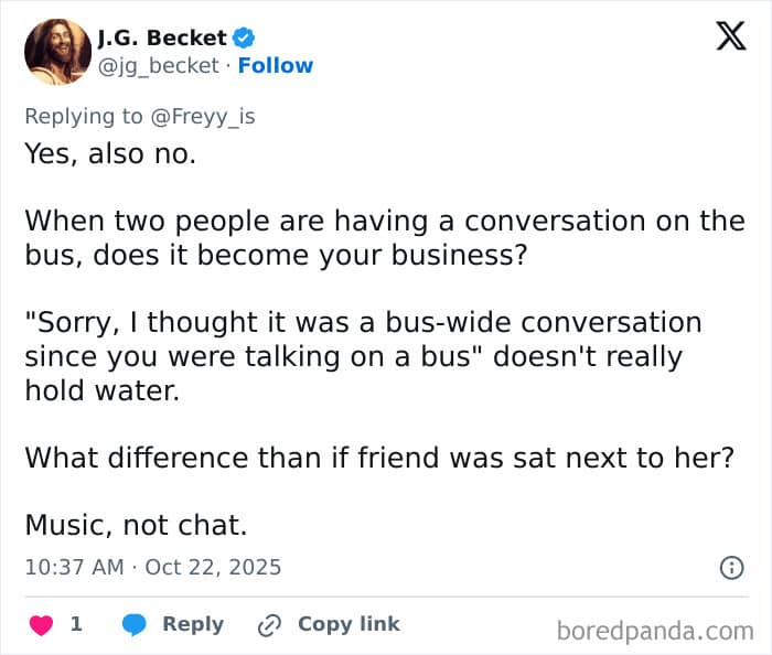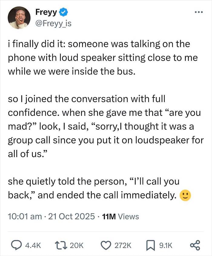 If you’ve ever encountered someone who was loudly talking on speakerphone or watching TikToks without earbuds on the bus, you know just how frustrating this can be. So instead of simply keeping his head down and internally grumbling, one man decided to teach a fellow passenger a lesson. Below, you’ll find a story of petty revenge that @Freyy_is shared on X, as well as some of the replies that readers chimed in with.