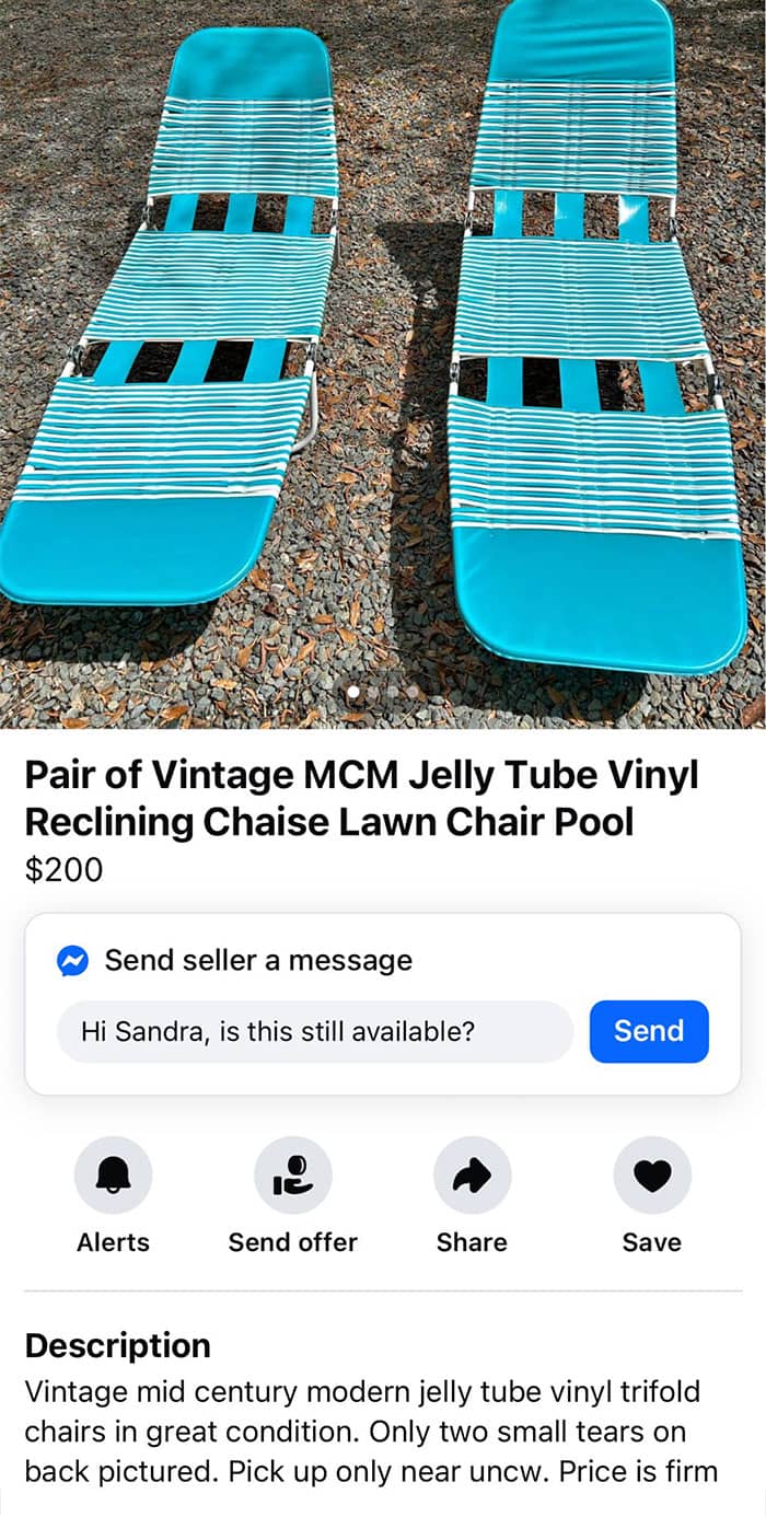 “Sellers also tend to overlook keywords, which are so important unless you’re driving traffic through social media. If you’re relying on marketplace searches, you need to think about what your ideal buyer is typing in. Include colors, styles, materials… anything that helps your item show up in the right search.”