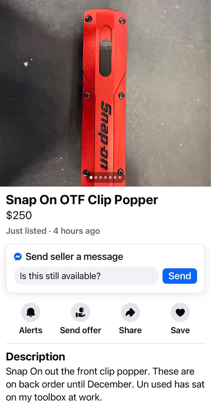 #107 Selling A $90 Clip Popper For 250 Is Crazy. My Snap On Guy Has Boxes Of Them Because They Won’t Sell😂