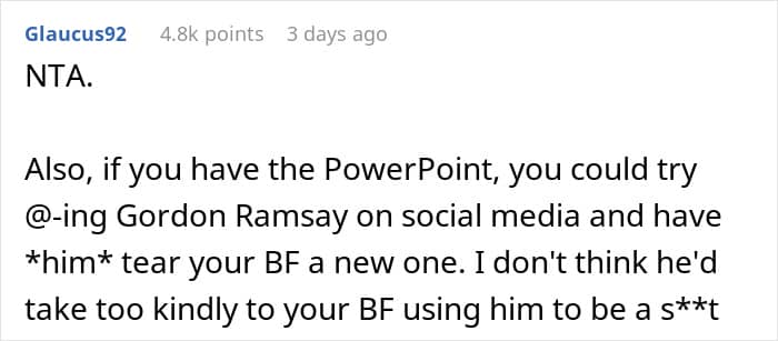 Quite a few netizens would seemingly love to make a PowerPoint criticizing the OP’s boyfriend himself