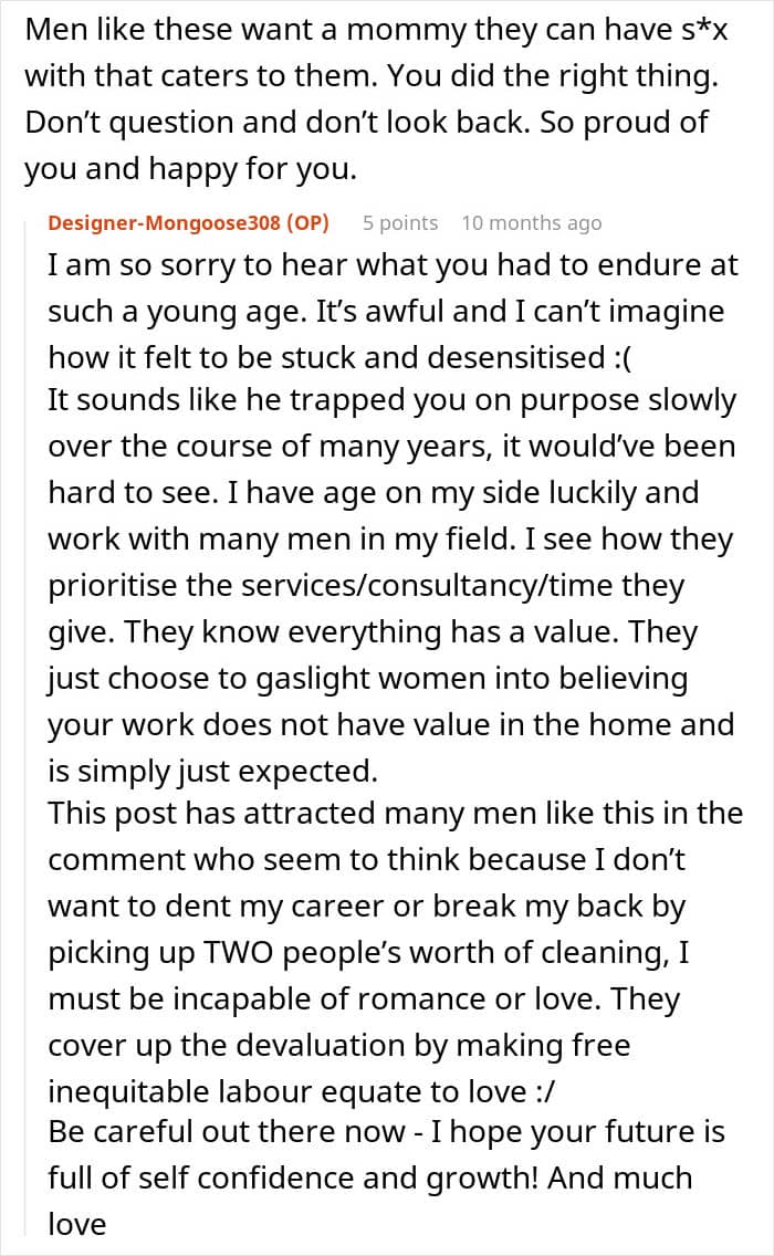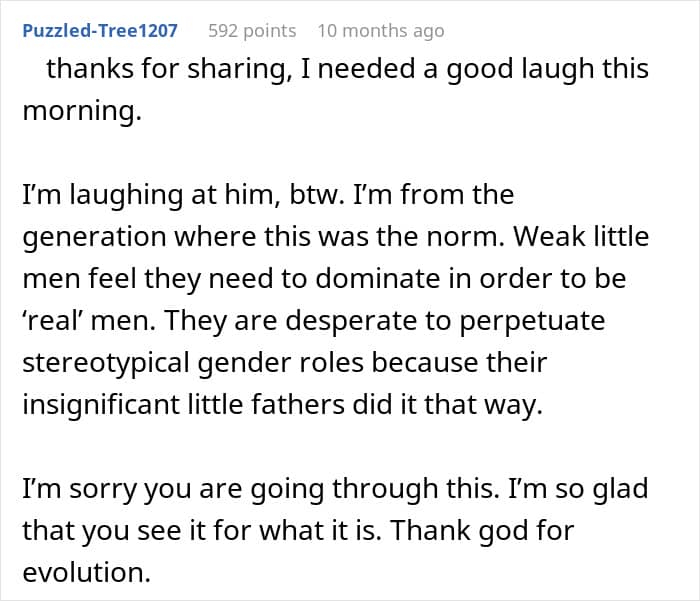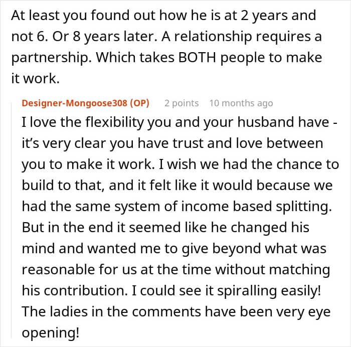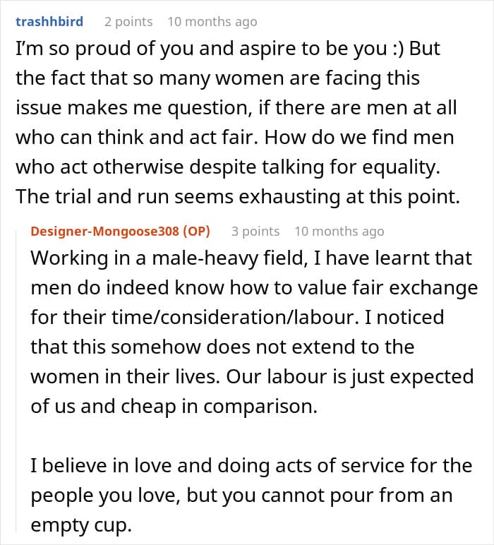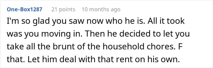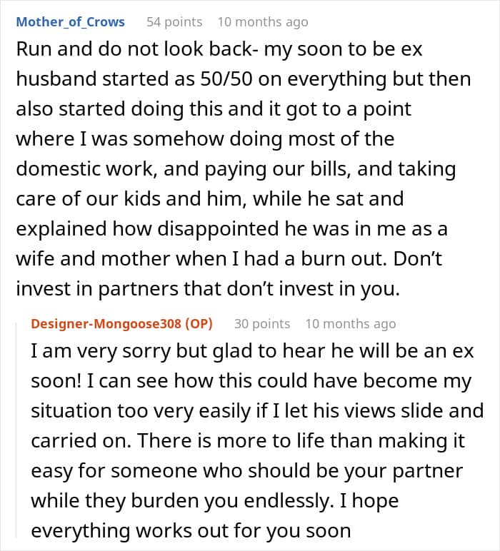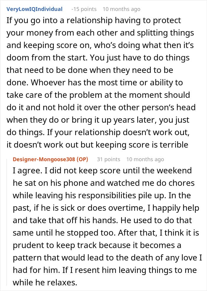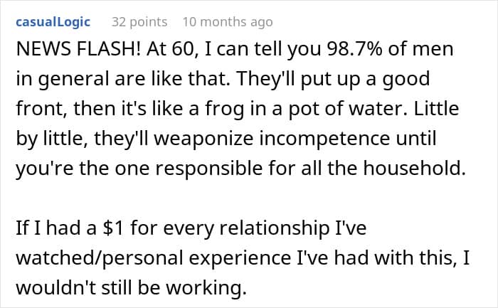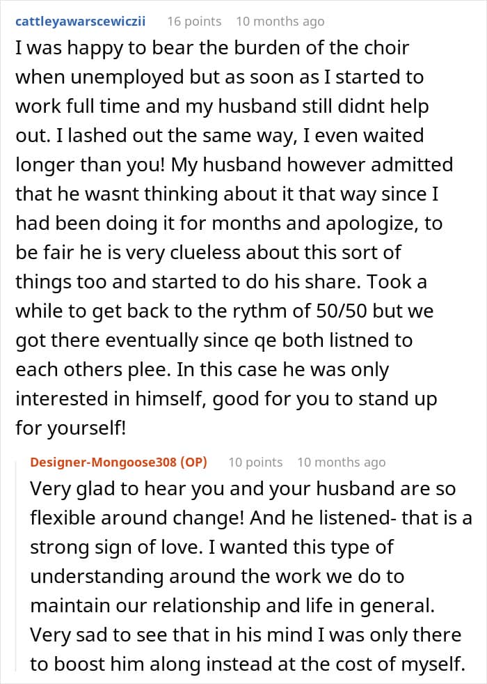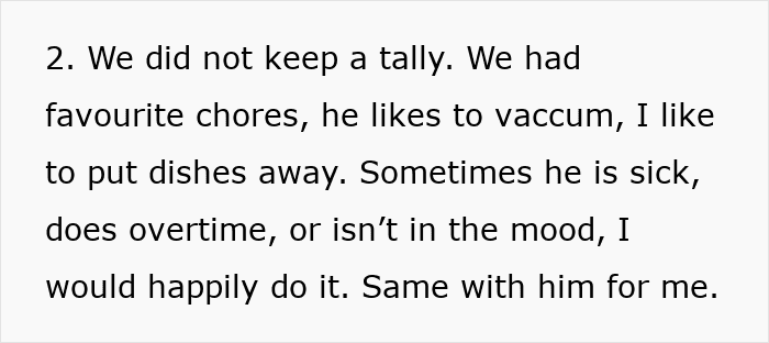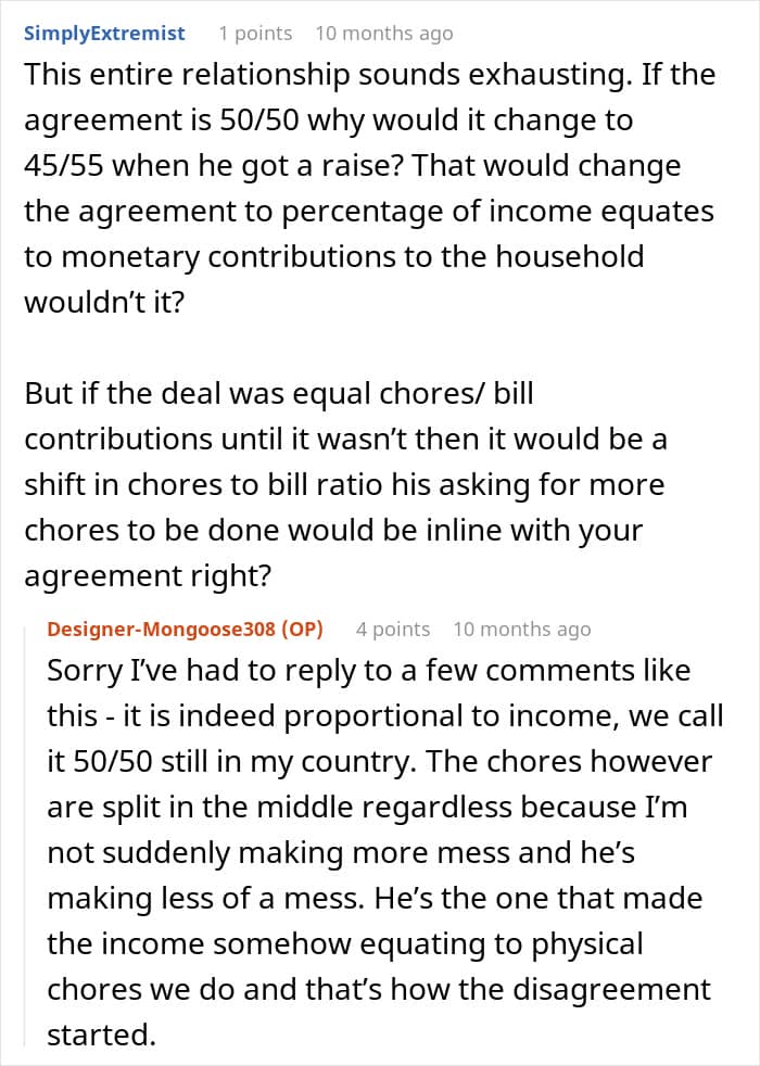 That said, this couple split chores pretty much equally—that is, until the BF got a raise and started boycotting