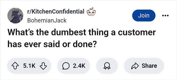 However, some people go beyond mere rudeness and go full delulu. In a thread on ‘Kitchen Confidential,’ the cooks and servers of Reddit spilled the tea about the dumbest things that customers have ever said or done. Whatever you think they did, we guarantee you, it’s much worse. Scroll down for some painfully relatable stories.
