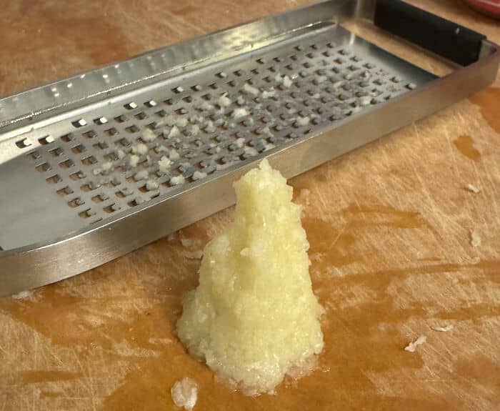 Prechop garlic, flatten it in a ziplock bag, score the garlic and lay it flat in the freezer over night. Congrats, you now have minced garlic that doesn’t have that gross jarlic taste.