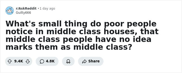 As you can probably see from this list, there are many subtle things that can indicate that someone is in the middle class. Things like owning matching cutlery or being able to fix what’s broken all show that a person has enough money to afford what they want. Apart from that, folks in this class also seem to aspire toward owning their own things.