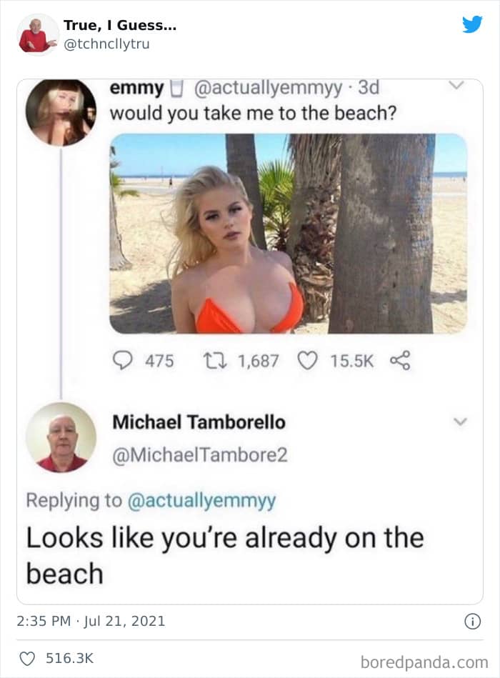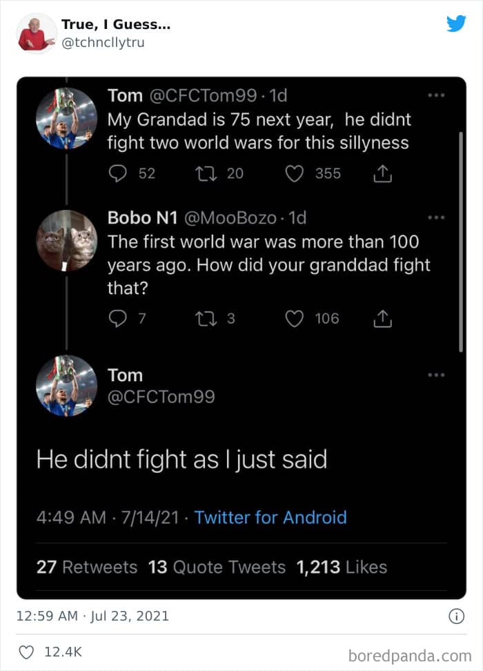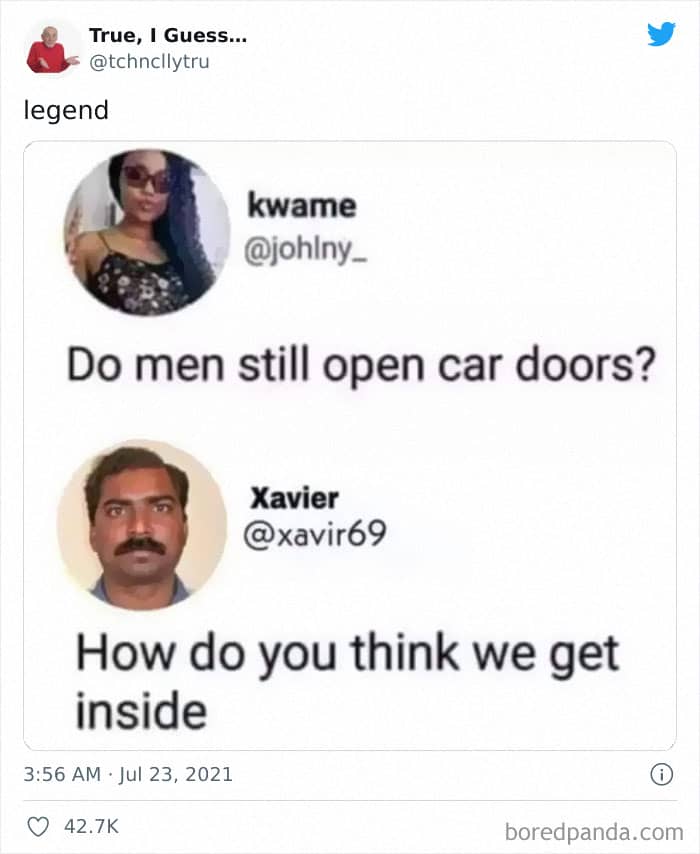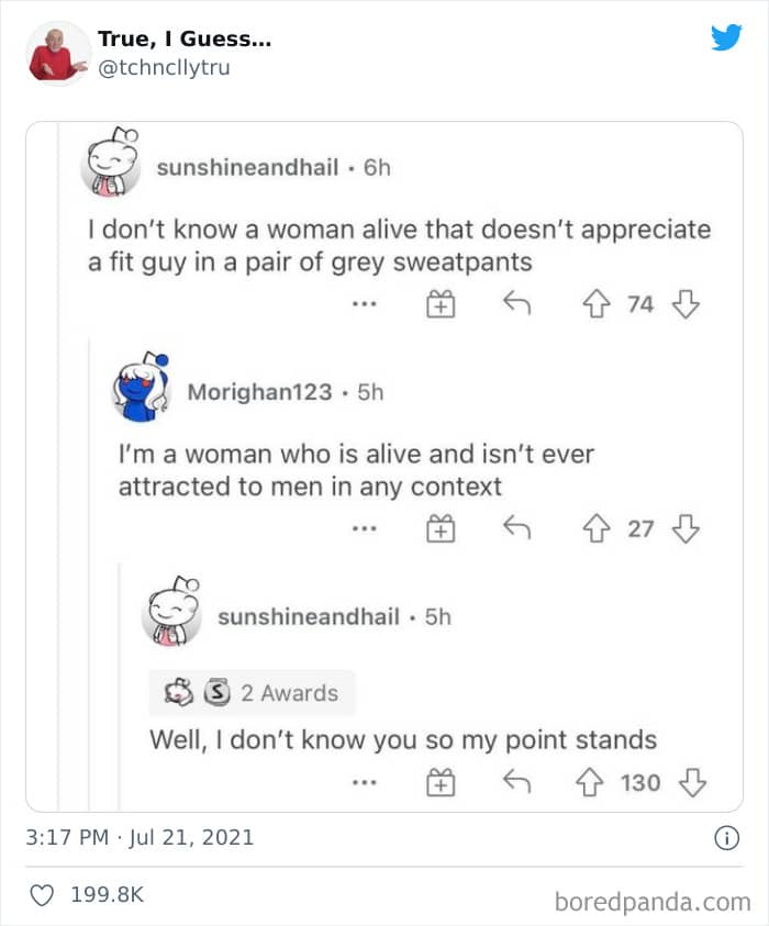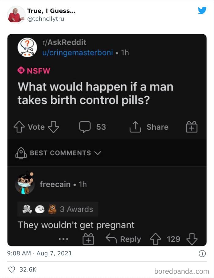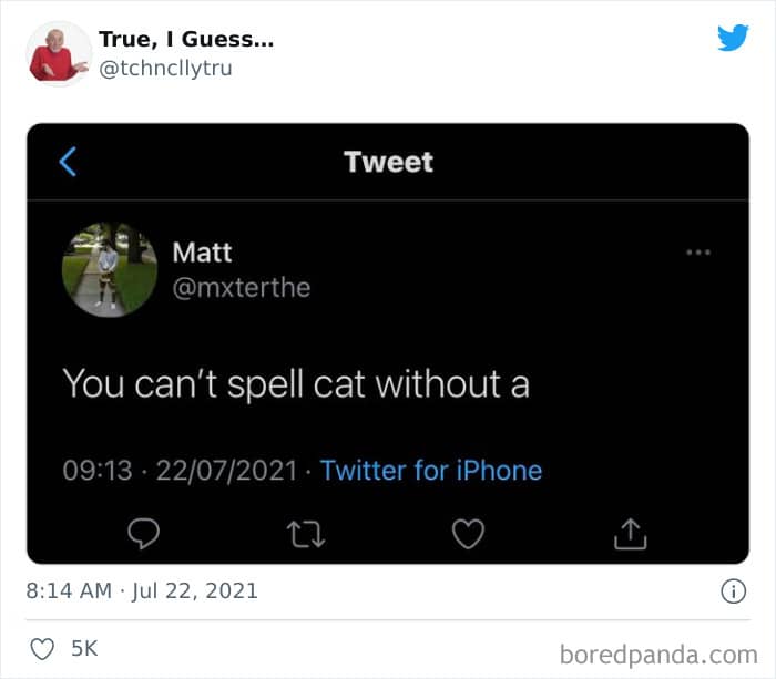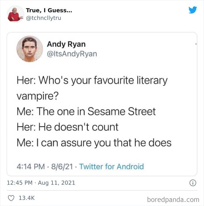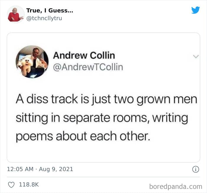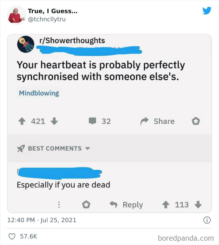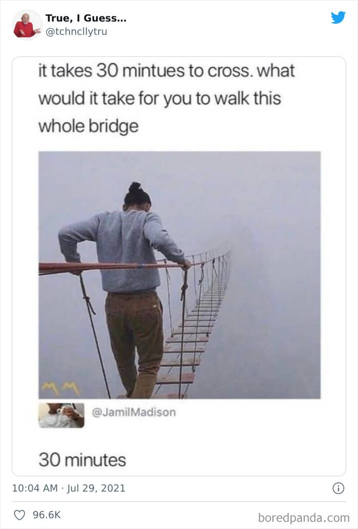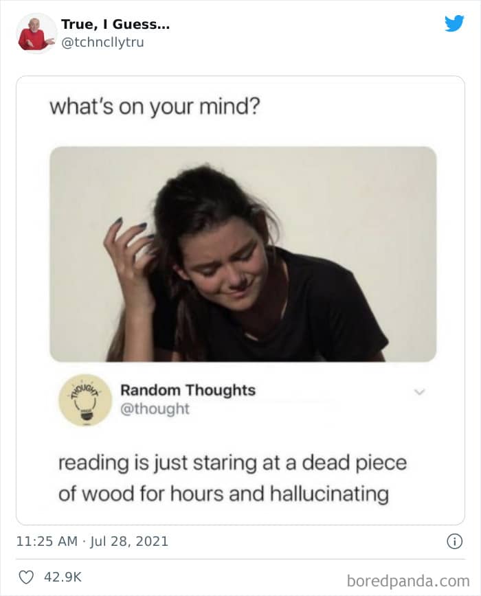 It’s called “True, I Guess…” and it shares — you guessed it — pictures of things that are technically true. It sounds simple, but believe me, just a couple of its tweets can make you question both your existence and the world around you.