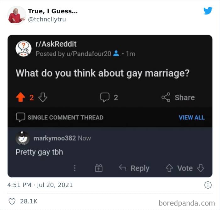 A few months ago, my colleague Jonas wrote a piece on a subreddit with the same kind of energy as this Twitter account. Check it out if you haven’t already!