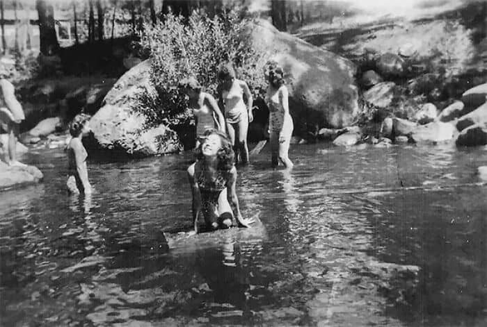 A group of thirteen years old girls went camping in America in July 1945. They swam at a river in Ruidoso, New Mexico. The girl in front of the picture is called Barbara Kent. What the girls did not know is that nearby, the Manhattan Project detonated a nuclear bomb as a test…