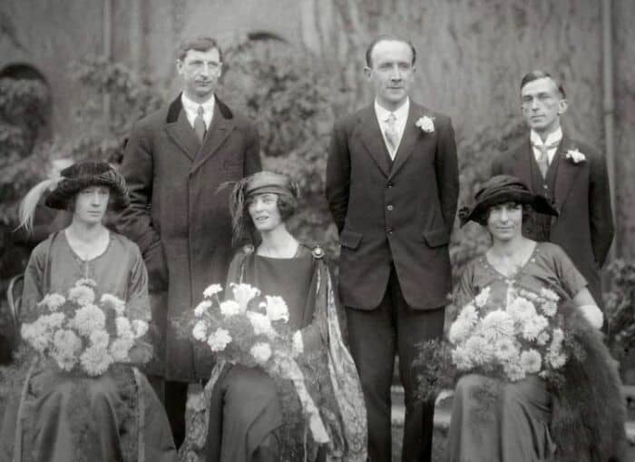 The happy man in the middle is Kevin O’Higgins. He has just been married to the lovely lady in front of him. On his right is his best man, Rory O’Connor.