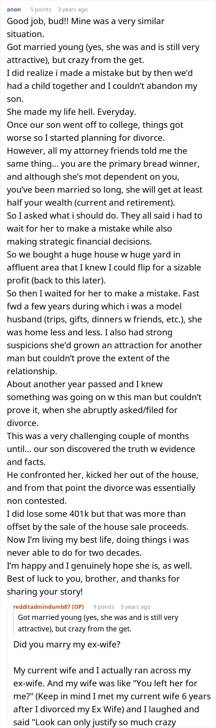Going through a divorce is pretty much always hard to deal with, but you’ve got to admit that the poster’s luck made things much simpler for him. In the end, he didn’t have to pay any money, and he also became friends with his ex-wife’s honest boyfriend, which seems like a bizarre turn of events.
