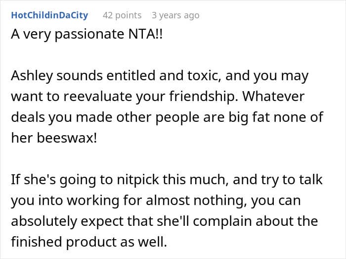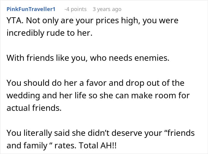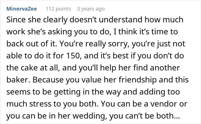 A woman shared her story of how her friend tried to lowball her into making a wedding cake