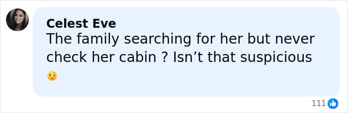 “Then slept on that bed like nothing happened. He told his stepmom when no one could [find] Anna on the ship. So yes, they know who did this, and it sickens me that the father, Chris, remains silent about it,” the message continued.