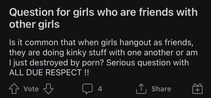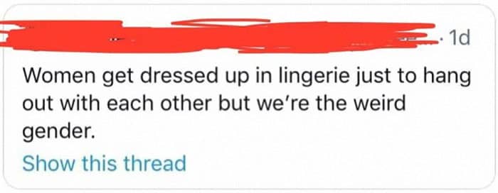 #24 This Person Gets Their Ideas Of Women Exclusively From Slumber Party Scenes Written By Men