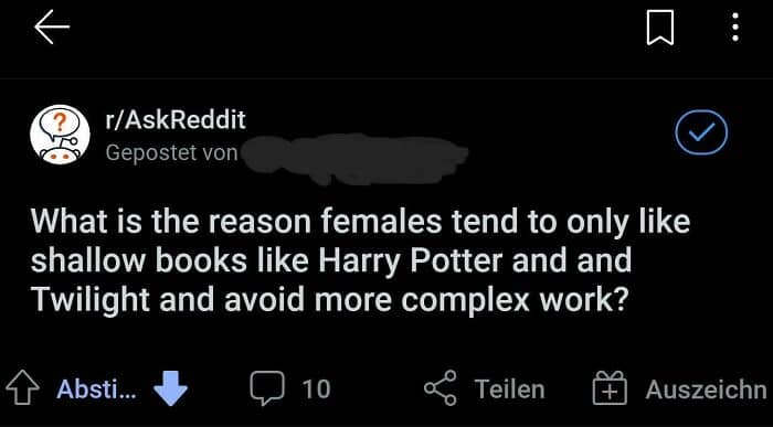 #44 Found On Another Sub, Women Only Like Harry Potter And Twilight Apparently