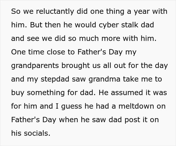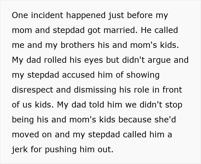 Then, a few years later, the author’s mom remarried some guy, who started imposing himself as a dad on the stepkids