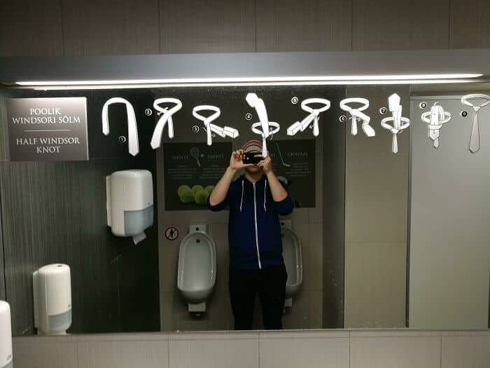 #28 In Tallinn Airport, One Of The Mens Bathrooms Has Step By Step Instructions On Tying A Tie