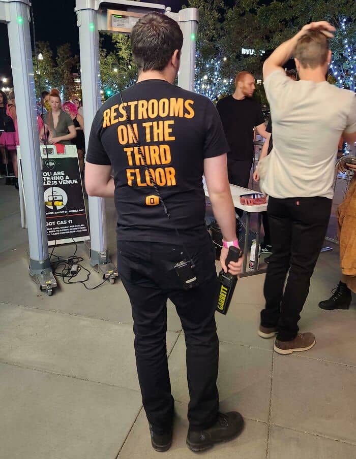#19 The Employees At This Venue Have The Location Of The Restroom On Their Shirts