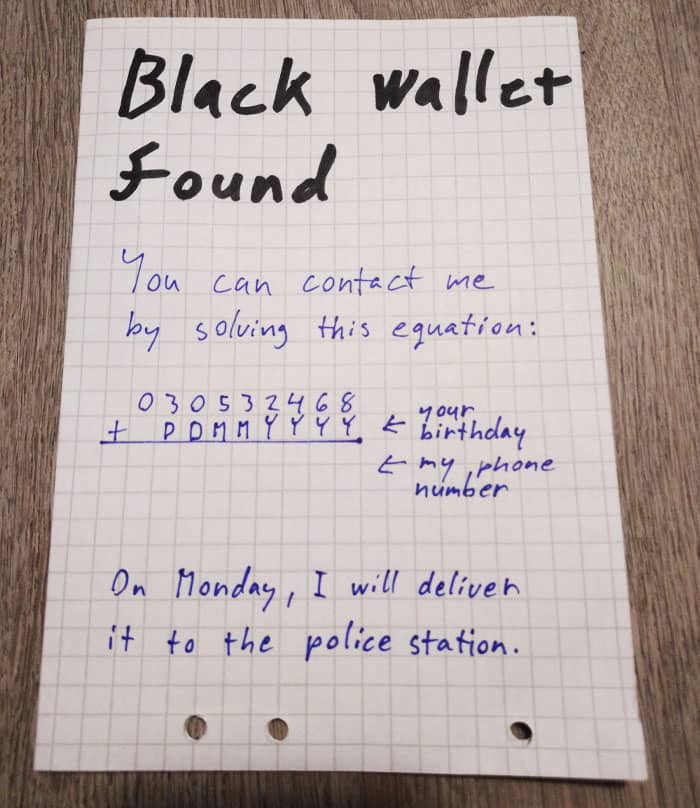 #6 I Found A Wallet On A Saturday, I Left A Note In A Way So Only The Real Owner Could Contact Me