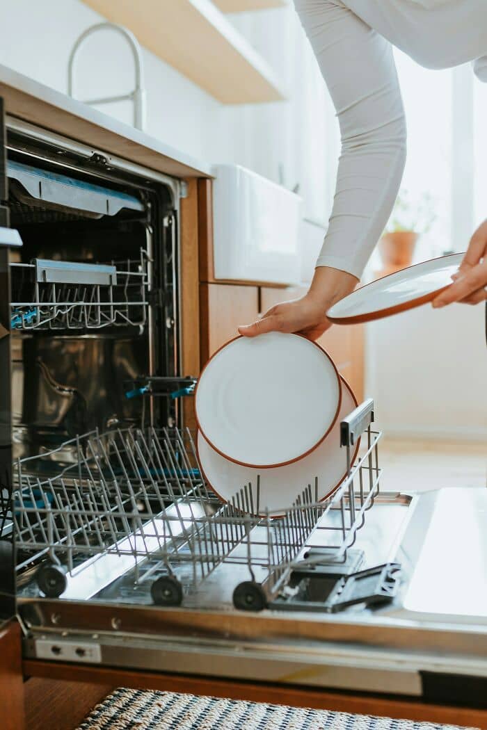 Using the dishwasher is more environmentally friendly and is more sanitary than hand washing because of the extreme heat.