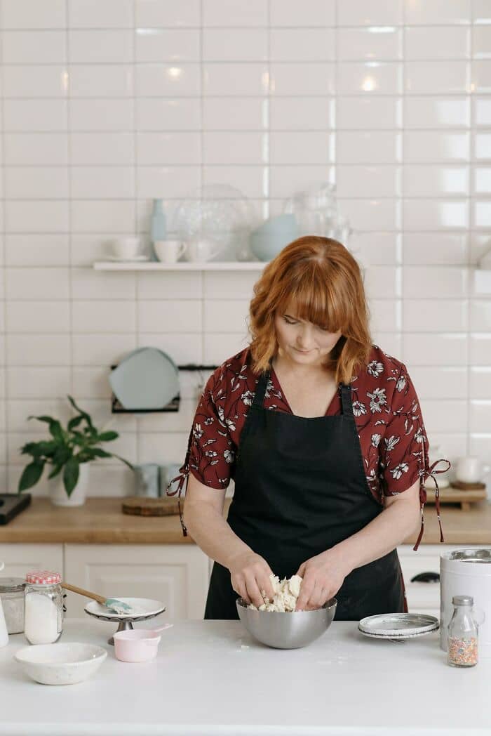 Cleaning the countertops with a solution of 1:10 lemon juice:water, it disinfects your area, smells fresh, does not harm your surface, and you can put your dough right on the counter without any risk of contamination