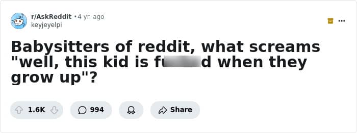 Someone asked babysitters online to share their stories of kids that really seem like they are going to have issues when they grow up and folks gave their best stories. So get comfortable as you scroll through, upvote your favorites and be sure to add your own thoughts and examples in the comments section below.
