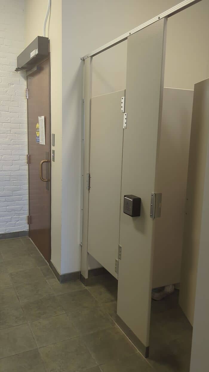 #57 This Handicap Button Mounted On A Bathroom Stall