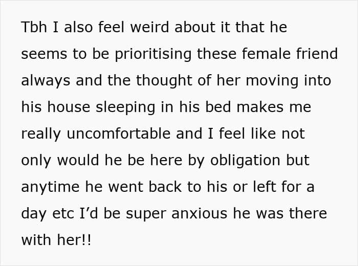 This left her feeling uncomfortable, and when she brought it up to the boyfriend, an argument followed. The OP expressed that she would be anxious every time he would have to go back to his place, but he insisted that he would be upset with her if she said no to his friend moving into his place. This then left her wondering why he was so quick to prioritize his friends and not her.