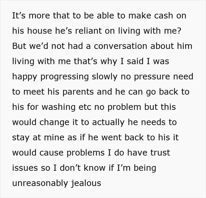 For more than a year, the OP’s relationship with her boyfriend looked solid, even during long-distance months. Once he moved closer, he was basically living with her, and everything seemed promising as he’d met her family, settled into her space, and they were moving toward something serious.