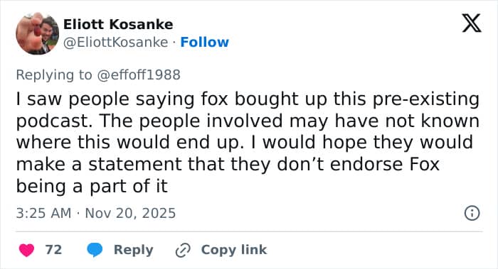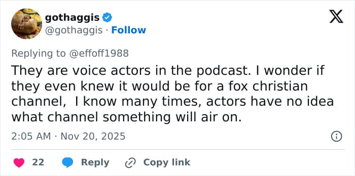 “If you are this upset over someone doing a podcast about faith, which they don’t control the distribution of, you should probably re-evaluate some things,” a user argued.