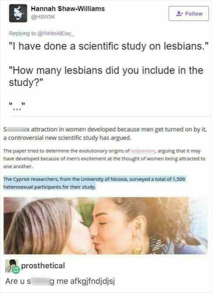 #32 What Causes Lesbianism? Let’s Ask Straight Men Instead Of Actual Lesbians!” This Is The Reason That Studies And Surveys Should Be Take With A Grain Of Salt
