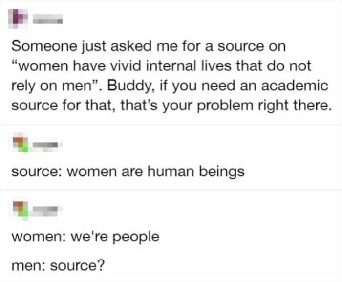 Take the ‘Not How Girls Work’ community on Reddit, for example. Shedding light on posts misogynists upload online, they use the power of the internet to shame their lack of knowledge regarding women and their outdated or plain cruel views towards them. In their own words, the community is “a place to laugh at all those clueless to how girls work,” and so laugh we will. Scroll down to find some of the posts shared by the community, and feel free to let it all out in the comments section if you feel your blood boil after going through the list.