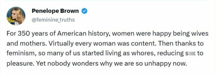 Unfortunately, even now, in 2025, misogyny is not a thing of the past. Some might even suggest that it is somewhat on the rise again, bearing in mind the prevalence of the incel (involuntary celibates) subculture and similar groups dedicated to denigrating women.